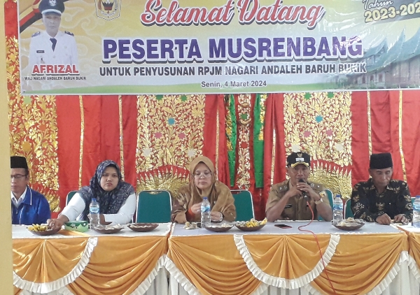 Permintaan tersebut disampaikan Wali Nagari Afrizal, ketika membuka secara resmi Musrenbang Nagari Andaleh Baruah Bukik di aula kantor wali nagari setempat, Senin (04/03/2024).