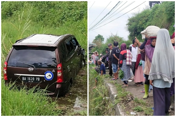 SABANA KABA, Tanah Datar–Satu unit kemdaraan minibus jenis Daihatsu Xenia dengan Nopol BA 1639 PB masuk ke dalam sawah di Nagari Pandai Sikek,  Rabu (17/04/2024) sekitar jam 11.30 Wib. Diduga sang sopir tak menguasai medan jalan, sehingga hilang kendali da  terjun masuk sawah.