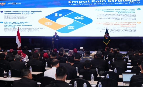 Untuk memperkuat peran PPNS, Wamen Ossy juga menilai perlunya wacana revisi Undang-Undang Pokok Agraria terkait pengaturan penyidik pertanahan. “Ini pekerjaan yang berat dan membutuhkan political will yang kuat. Namun, tidak ada yang tidak mungkin jika kita memiliki keinginan yang kuat,” tegasnya.