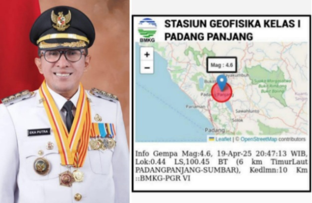 SABANA KABA, Tanah Datar–Bupati Tanah Datar Eka Putra, SE, MM menghimbau seluruh masyarakat untuk tetap tenang dan waspada, terkait dengan gempa bumi berkekuatan parameter magnitudo 4,6 yang mengguncang Luhak Nan Tuo Sabtu 19 April 2025 pukul 20:47:13 WIB,.