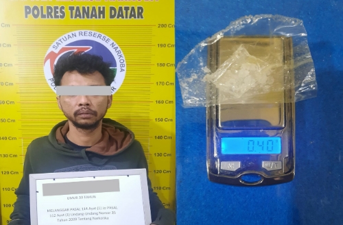 Kapolres Tanah Datar AKBP Derry Indra, SIK melalui Kasi Humas Iptu Gusrizal menjelaskan, penangkapan terhadap terduga pelaku AMS berawal dari informasi yang di dapat oleh Tim Tarantula tentang adanya tindakan Penyalahgunaan Narkotika di seputaran Kecamatan Lima Kaum.