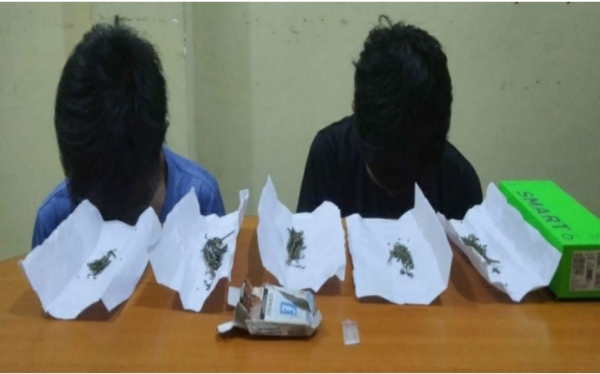 Saat tim mendatangi lokasi, ditemukan dua orang terduga pelaku yang saat diamankan ditemukan barang bukti berupa 5 (lima) paket kecil diduga Narkotika Golongan 1 jenis tanaman Ganja dan 1 (satu) paket narkotika golongan 1 jenis sabu tambahnya.