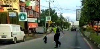 Peduli Sesama Makhluk Hidup, Polantas Evakuasi Dua Ekor Kucing Korban Tabrak...
